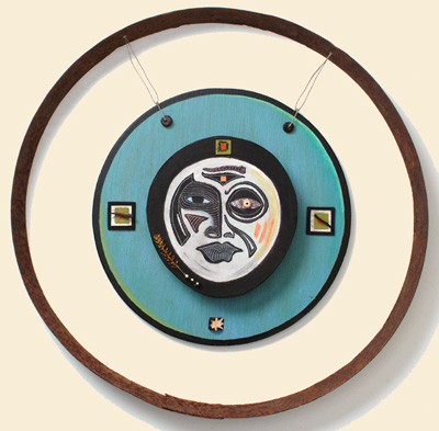 eyes: 23" diameter: iron hoop, wood, pastel, paint, beads