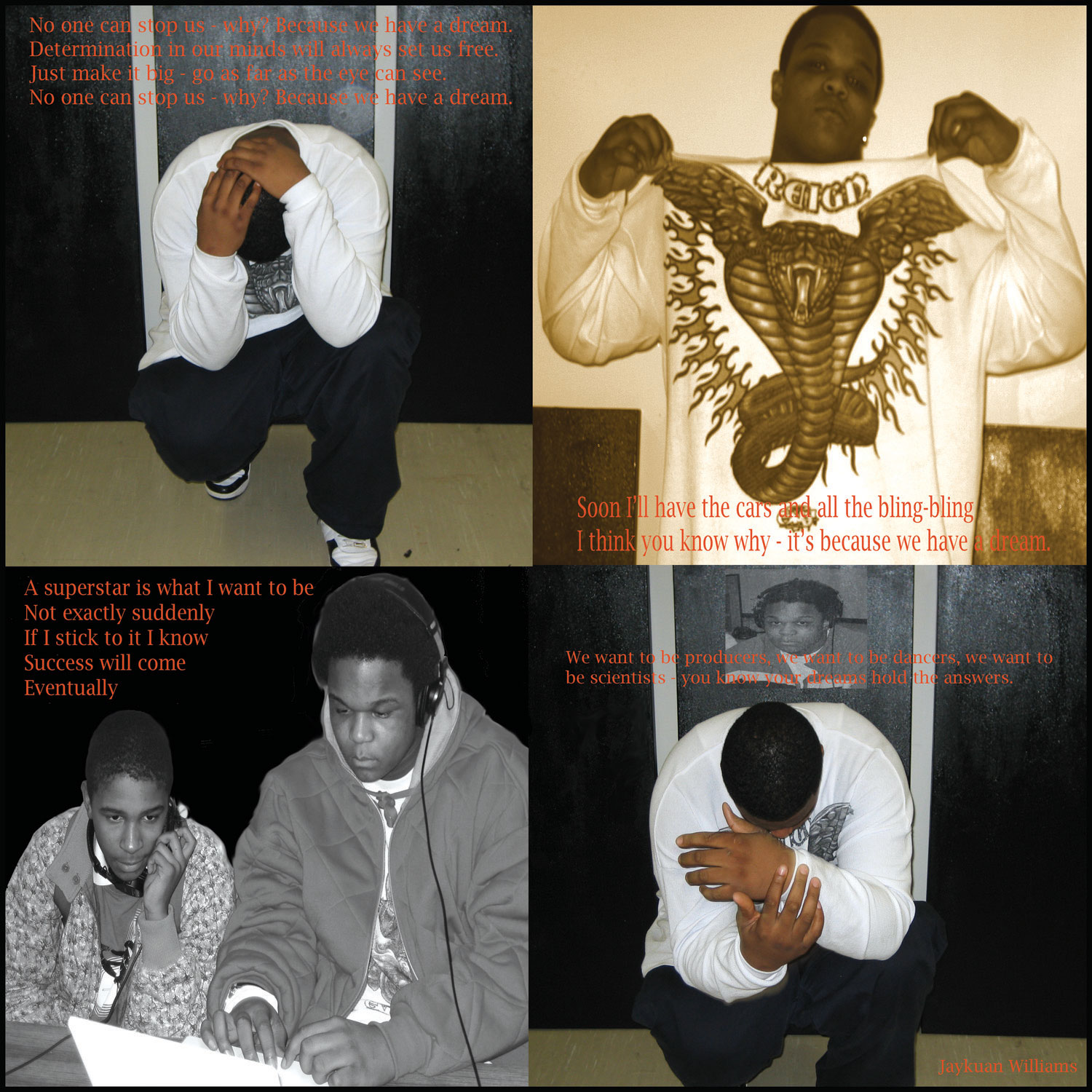 Classical Magnet Talent Show: Black Box Theatre: Multi-media installation and performance piece featuring original student music, rap, dance/choreography, poetry and large scale photo-collage prints, in Fast-Track Media and Explorer.