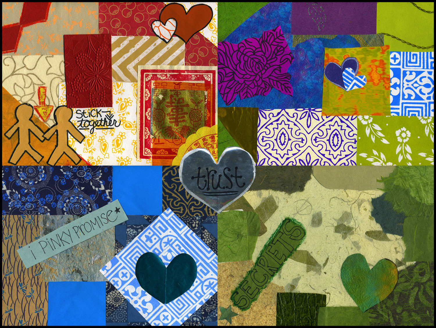 Hartford Stage: “Words Alive in the Middle!” Created multimedia arts residency based on The Diary of Anne Frank. This interdistrict grant joined Lewis Fox, Derby and Smith Middle Schools. Students created CDs, DVDs and art based on themes derived from study of the Holocaust: struggle, joy, courage, trust, triumph, despair, hope, tolerance, love. They journeyed together to Washington, DC, and performed at the culmination ceremony, which included their own film, photos, artwork, writing and soundtracks, at Hartford Stage, Spring, 2008. Student collage Joy, created in my multimedia class, was exhibited in Hartford’s contribution to the international “Exhibition Coexistence” project, funded (in Hartford) by The Hartford Financial Services Group.